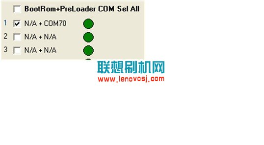 4、注意:USB 端口號和 PreLoader 端口號設置的 Channel 號要匹配。即都設置到 Channel1。然後在從工具文件夾中打開運行其中的'SPMultiPortFlashDownloadProject.exe",在工具左側選你設置了端口號的復選框,端口設置完成。上圖我們設置的是“1”我們就要在如下的界面中“1”上面打勾。勾好後如下所示: