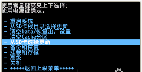 2、使用工具箱的重啟到recovery功能,將手機重啟到recovery界面,如下:(音量選擇,電源確定)