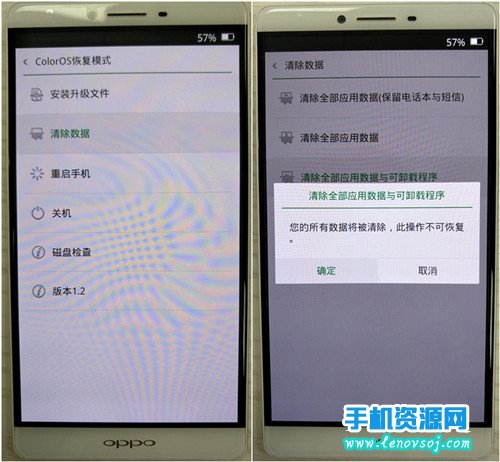 ②進入恢復模式:手機關機後,同時按住“開機鍵”和“音量下鍵”等手機產生震動即可松開電源鍵,等待進入OPPO恢復模式;