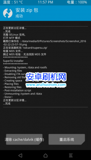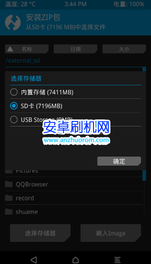 3:在recovery主界面,點擊 “安裝”,即可進入系統目錄選擇文件。選擇“選擇存儲器”可以切換內外存儲器,找到剛剛准備好的zip格式root包,點擊它,然後滑動下方按鈕“滑動確認刷入。