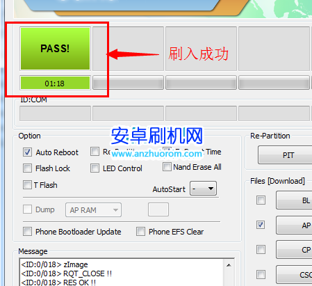 6:固件刷完之後,上面會顯示【PASS】字樣就表示刷入成功了。