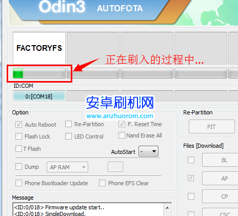5:三星G9200線刷文件都選好之後,點擊【start】開始刷入: