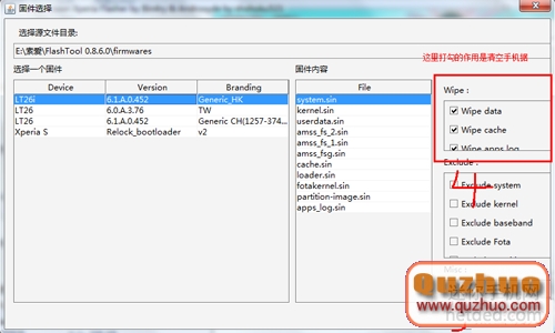 5:挑選好固件後,右邊清空數據打勾 最後按承認