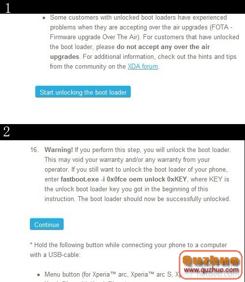 2:把頁面調整到最下方點擊“Start unlocking the boot loader”