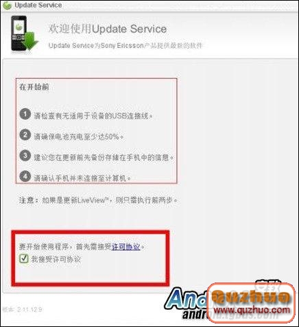 2、仔細閱讀紅框所指的位置,勾選協議,開始