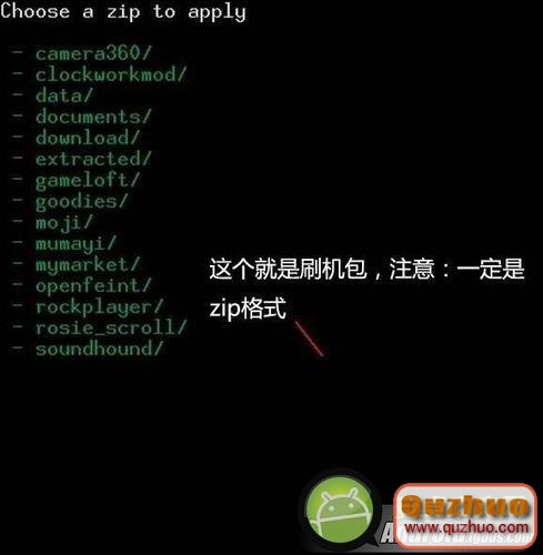 四:選第五項install zip from sdcard 按電源鍵確定,然後再選第二項 choose zip from sdcard按電源鍵確定,然後選擇rom刷機文件 按電源鍵確定, 再選yes按電源鍵確定開始刷。