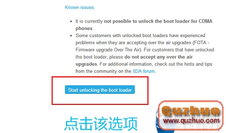 在頁面底端點擊“Start Unlocking boot loader”