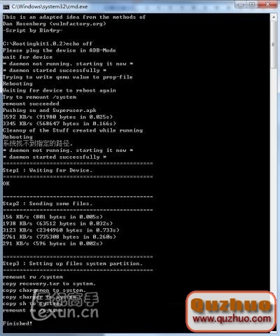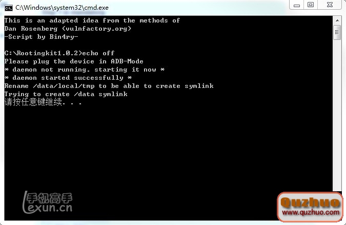 3.9手機連接計算機 去C:\\Rootingkit1.0.2,運行setp 2.bat 期間會重啟,等待結束。