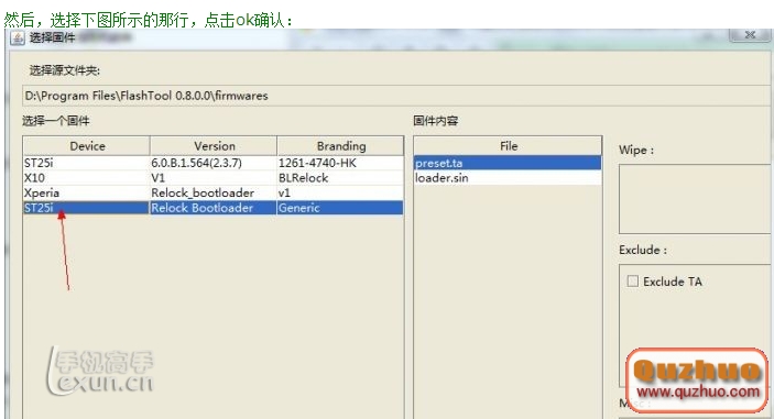 將下載的後綴.ftf的重新鎖回BL的補丁文件放入\\FlashTool 0.9.6.0\\firmwares文件夾。