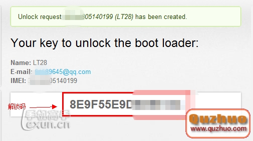 8、系統給出你手機對應的BL解鎖碼,這個密碼是唯一的,可以多次申請,但是還是復制、粘貼、保存吧。