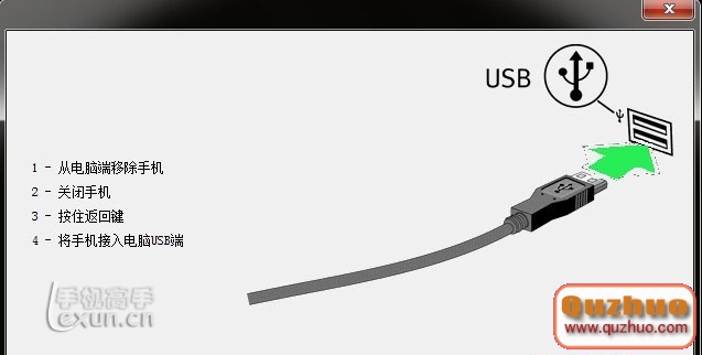然後拿出手機(確保手機已經是徹底關機狀態),然後按住音量減的同時用USB線連接www.shuleba.com電腦與手機