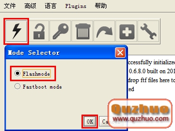 .按圖示操作,選擇Flashmode模式,點擊OK確認