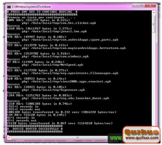 4.等到手機安裝完軟件並正常重啟之後,恢復DOS窗口,按下回車,窗口會提示再按一次回車!這將安裝一些軟件,並最終完成root步驟!