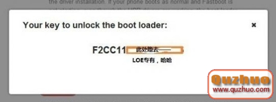 8.完成以後再次輸入fastboot.exe -i 0x0fce oem unlock 0xKEY (這個最後面的KEY就是你在網站上獲取的序列號。比如BGT564XXX,那麼最後面就是就是輸入0XBGT564XXX)然後回車鍵。