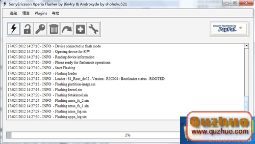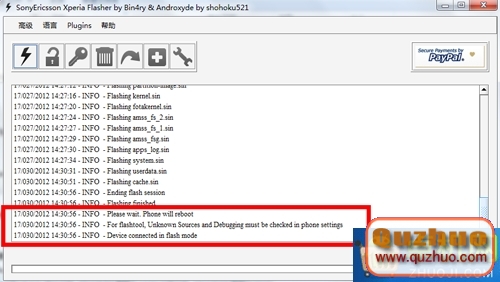 9:FlashTools主界面將顯示刷機進度條和日志