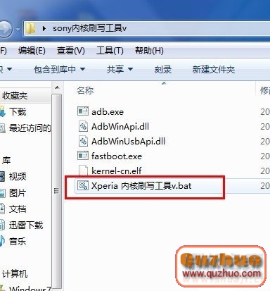 3:然後在解壓出來的“sony內核刷寫工具v”文件裡找到“Xperia 內核刷寫工具v.bat”,然後直接雙擊運行就可以了