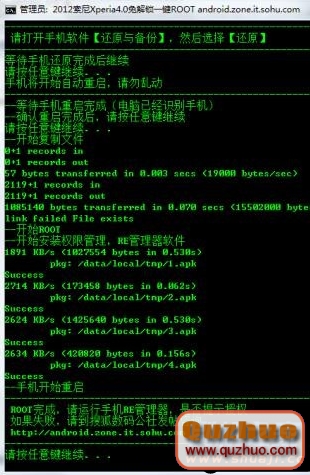 6:等待手機還原完成後,依照ROOT軟件的提示,繼續按任意鍵下一步,手機開始重啟