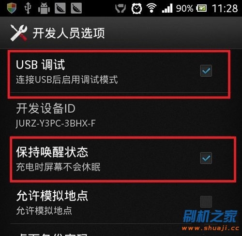 1:手機先要設置一下:請到 “設定” >> “開發人員選項” >>勾選 “USB調試” 和 “屏幕保持開啟”
