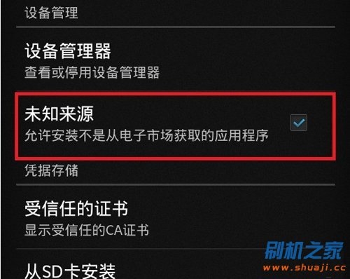 2:請到 “設定” >> “安全性” >> 勾選 “未知來源”