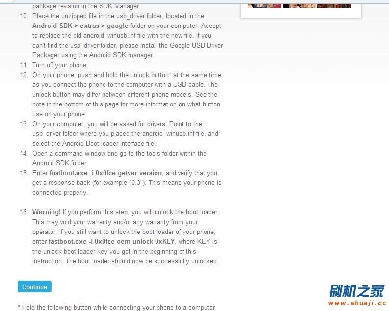 2、下拉,找到“start unlocking the boot loader”,點擊這個按鈕