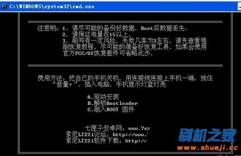 4、運行附件解壓後得到的索尼LT22i-一鍵Root工具(解BL工具).bat;