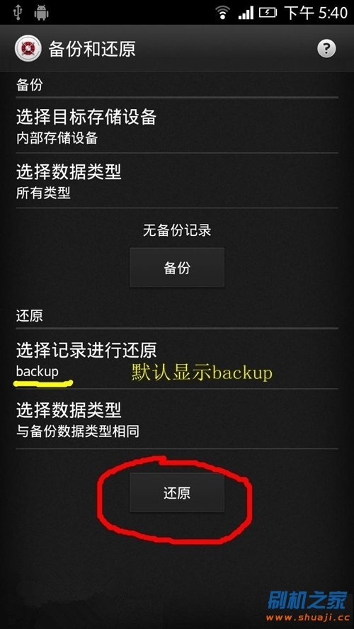 3.看到顯示此截圖後,請打開手機上的軟件【還原與備份】,然後選擇【還原】
