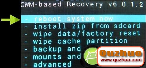 4:等待刷機完成,刷完之後返回到recovery主界面,然後選擇reboot system now 重啟手機就可以了。