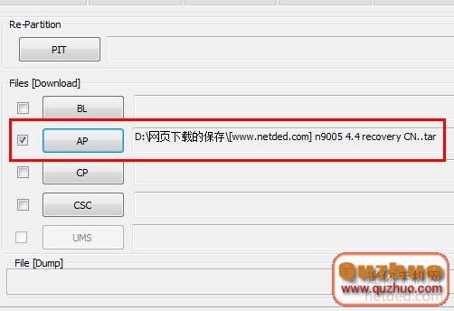 4:翻開odin軟件之後軟件會自動辨認你的手機,辨認成功後會在ID:COM處顯現藍色的(表示手機銜接成功了,假如沒有顯現藍色的,闡明沒有有銜接好),然後勾選PDA,挑選剛才下載下來的tar格局的recovery包。