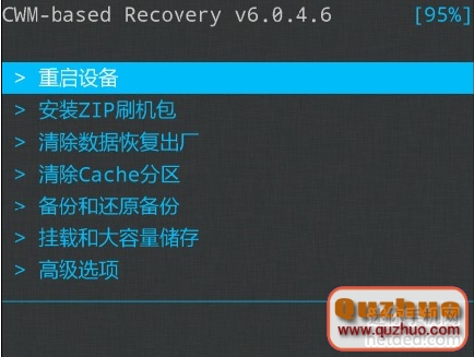 假如顯現上面的效果圖的話,闡明recovery刷入成功了。