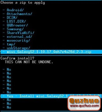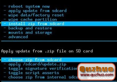 3:然後按按音量挑選install zip from sdcard,然後再呈現的界面裡挑選choose zip from sdcard,然後找到剛才放放到sd卡根目錄下的zip格局的rom刷機包,然後按HOME鍵進行承認,然後然後選YES。