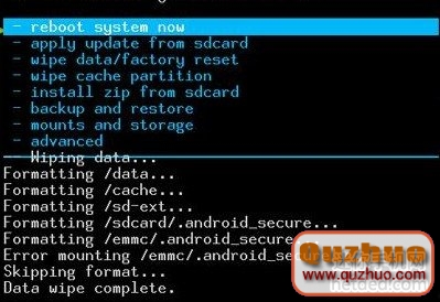 4:開端刷機...,刷機完成後回來recovery主界面,選中reboot system now,承認後開端重啟