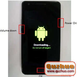 4:手機關機狀態下,經過數據線接www.shuleba.com電腦,進入刷機形式:一起按住音量減小鍵(音量下鍵) Home鍵(屏幕下方中心的方塊按鍵) 開機鍵,呈現第一界面後再按音量增加鍵(音量上鍵)進入刷機形式。三星i9100怎樣進刷機形式和康復形式及差異>>>>