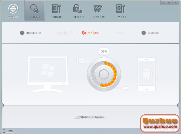 發動刷機軟件,用數據線連接三星i9220和www.shuleba.com電腦。