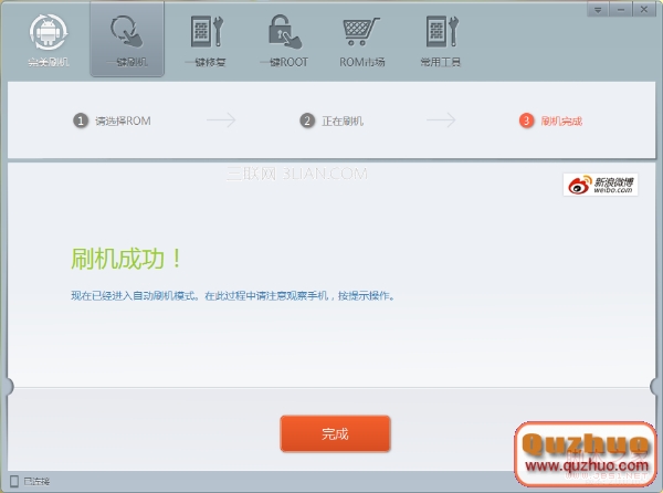 當刷機軟件此刻頁面如下圖所示時表明刷機軟件現已完結三星9220刷機作業,請點擊“完結”,同樣不要移動手機,手機現已進入主動刷機形式,這是三星i9220 n7000 Galaxy note刷機教程最後一步,耐性等候手機主動重啟吧。