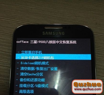 10、運用音量鍵操作,HOME鍵斷定。挑選“從SD卡挑選ZIP刷機包”