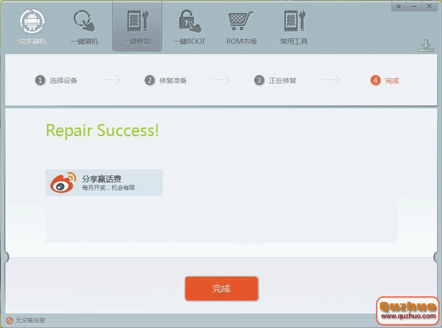 軟件“修正成功”頁面彈出,三星note3 n9002開端重啟,第一次開機時間比較長,相同耐性等候。手機主動重啟成功,三星note3聯通版n9002救磚進程完畢。