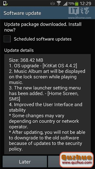 據外媒報道,比利時、希臘、馬來西亞和波蘭的三星Galaxy S4(I9505)用戶日前已經開始收到OTA推送最新的Android 4.4.2系統更新。