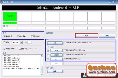 運行刷機工具包中的Odin3 v1.30.exe