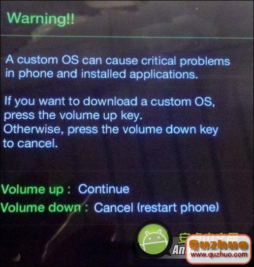 3、再按上音量鍵,進入界面為綠色機器人,此為線刷機模式