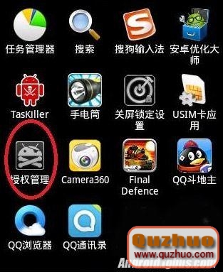 進入recovery模式之後,使用音量上下鍵進行選擇,按HOME鍵確認,選擇第二項(apply update from sdcard),home鍵確認,然後選擇你剛才放在SD卡根目錄下的update.zip文件,按HOME鍵確認,等待幾秒鐘之後手機會自動回到前面的界面,這時選擇第一個reboot system now(立即重啟),手機開機之後,查看自己的應用程序中是否有一個骷髅頭一樣的圖標(下圖有提示),這是三星s5830iroot權限獲取時自動安裝的一個“授權管理”的軟件,如果有則表明你的手機root成功。