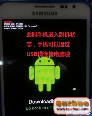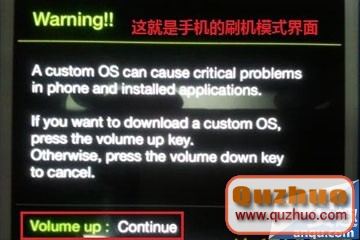 1、這個時候手機不要連接www.shuleba.com電腦。手機完全關機,同時按住音量下鍵+電源鍵+HOME鍵,直到手機進入刷機界面,再按音量上鍵,手機就會進入刷機狀態。