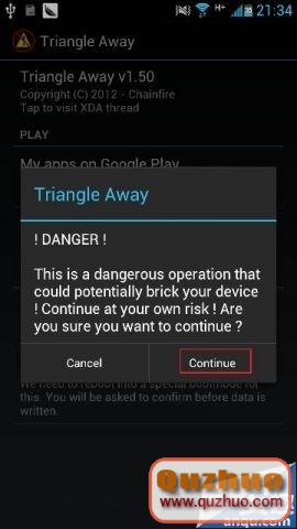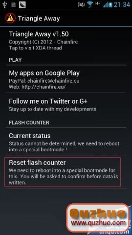 第一步,安裝好【eu.chainfire.triangleaway-1.apk】之後,打開下載需要的配置文件,屆時會有提示,按照提示順序來即可。