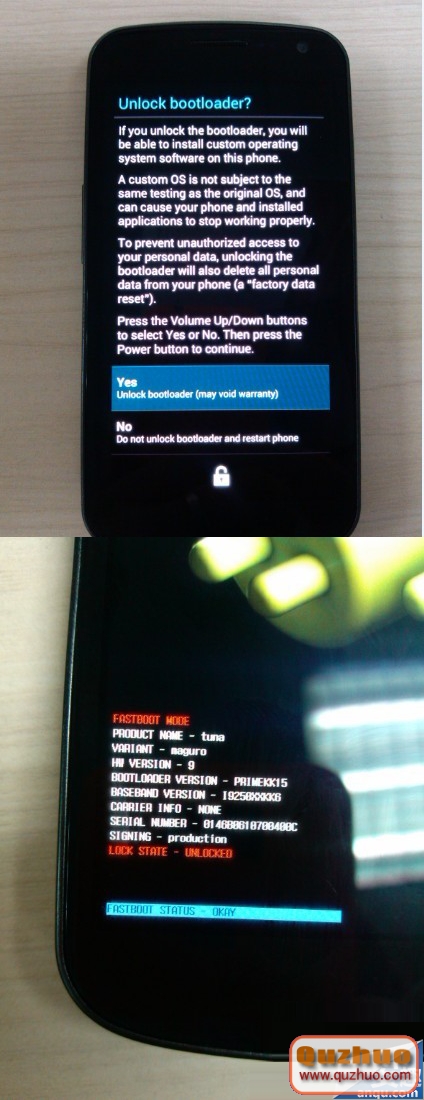 第三步,三星i9250解鎖Bootloader:
