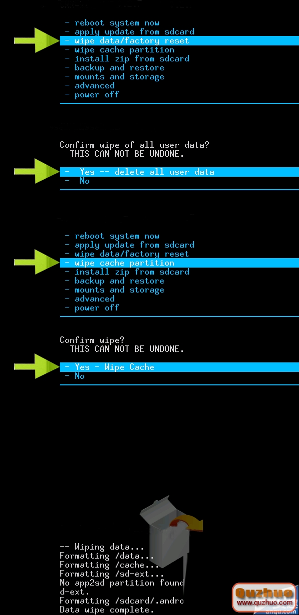wipe cache partition——Yes-Wipe Cache.