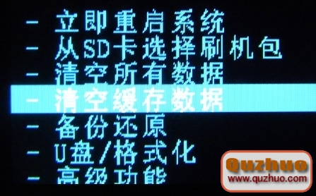 3、雙清完畢後Recovery回到默認界面,我們再選擇【安裝ZIP刷機包】,