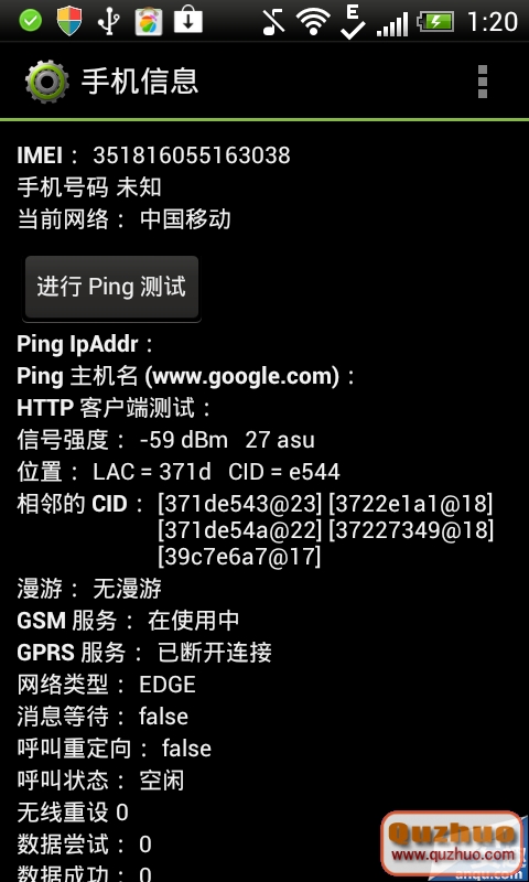 第二步,選擇手機信息,進入詳細信息,看到最下面的信號強度,—號後面的數字越小,信號越強。