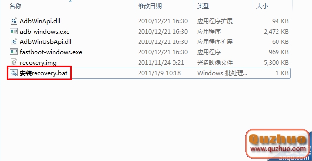 第五步,接下來將三星i9250通過USB數據線連接www.shuleba.com電腦,並且打開【android_4.1-recovery.zip】,雙擊,選擇安裝recovery.bat,按照界面提示操作。