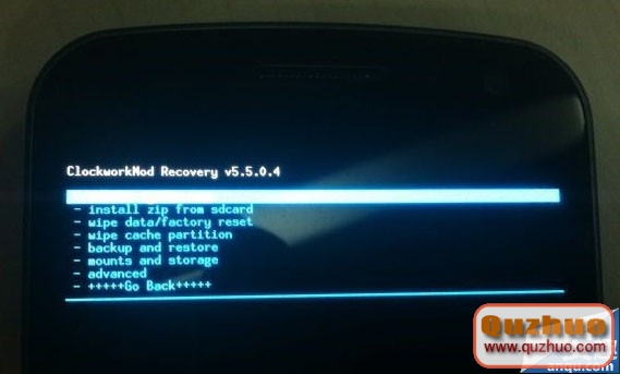 第八步,雙wipe後,選擇install zip from sdcard,找到下載好的三星i9250安卓4.1 ROM包,使用電源鍵確認,開始刷機。