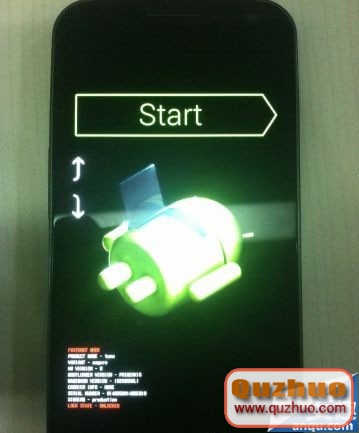 第四步,將三星i9250關機,同時按音量上鍵+音量下鍵+開機鍵,2秒後,手機自動開機進入fastboot模式,如下圖所示: