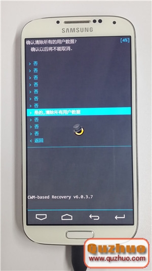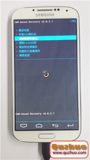 3.完成後再將手機進入Recovery模式,按照圖中步驟進行刷機前的必備步驟——雙清: